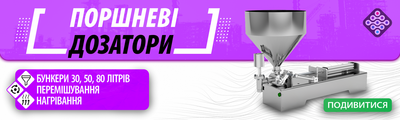 - Поршневі дозуючі установки з можливістю підігріву і перемішування продукту.