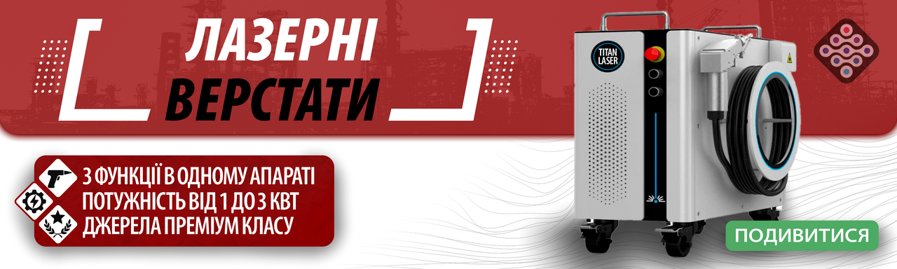 - Лазерні зварювальні апарати від 1 до 3 кВт.